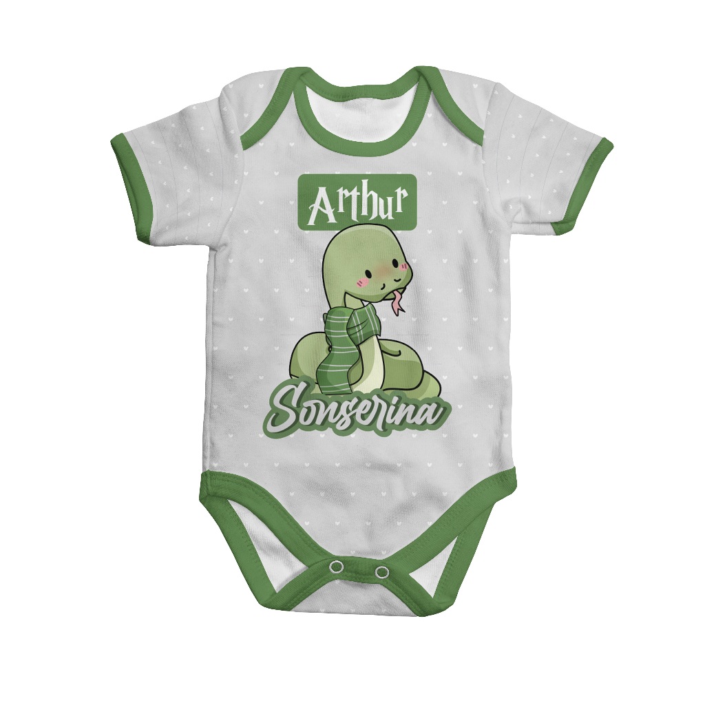 Body de bebê personalizado com nome Harry Potter Sonserina