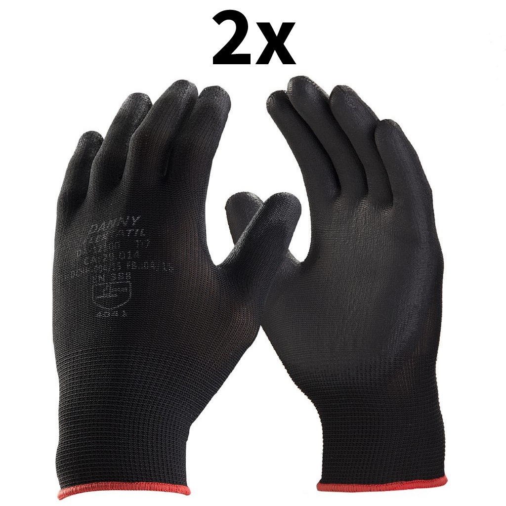 2 Pares Luva Antiestatica para Eletronica Banho em PU Multitato Preta Multiuso Tricotada Flextáctil Danny CA 29014 / Tátil / Nylon Poliamida / Poliuretano / EPI Proteção e Segurança / Manutenção CA29014