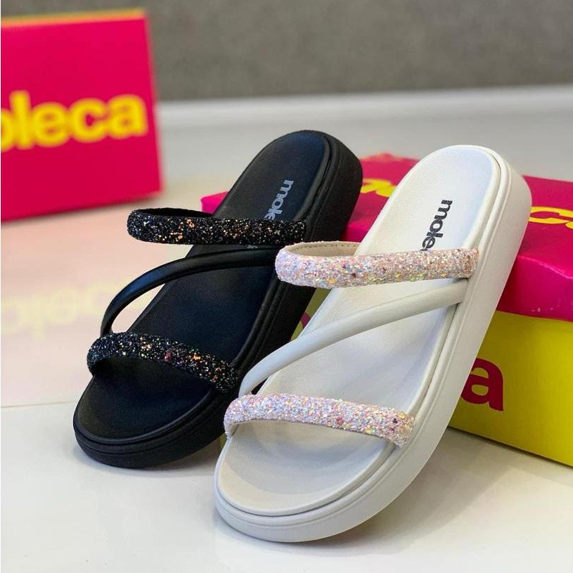 Sandália Feminina Moleca Papete Brilho 5469.121 Chinelo Slide Glitter Flatform Original