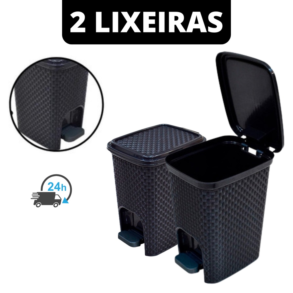 2 Lixeiras Com Pedal 7 Litros Com Tampa Preto Rattan Casa Escritório Banheiro Cozinha Resistente Lixo Lixeira
