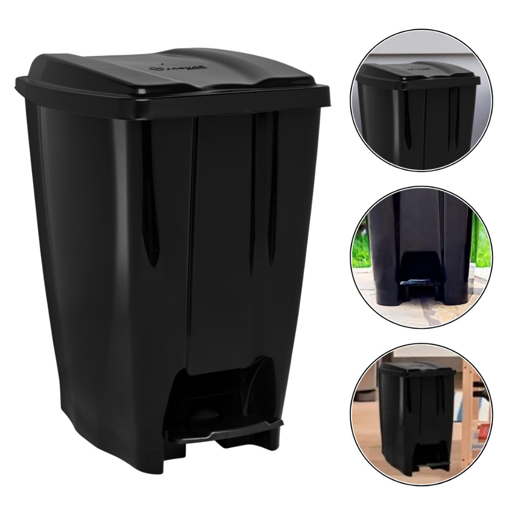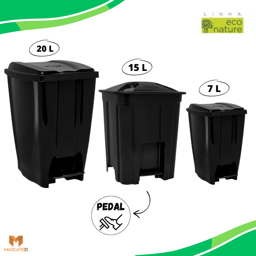 Lixeira Banheiro Preta com pedal e Tampa 7 12 15 20 Litros Jaguar
