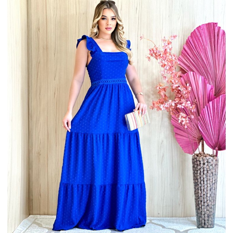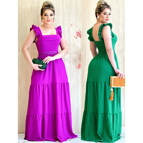Vestido Longo Feminino Plus Size 3 Maria Luxo com babada na manga e Lastex nas Costas