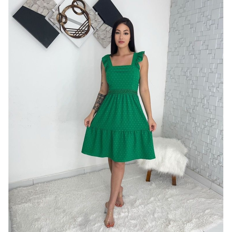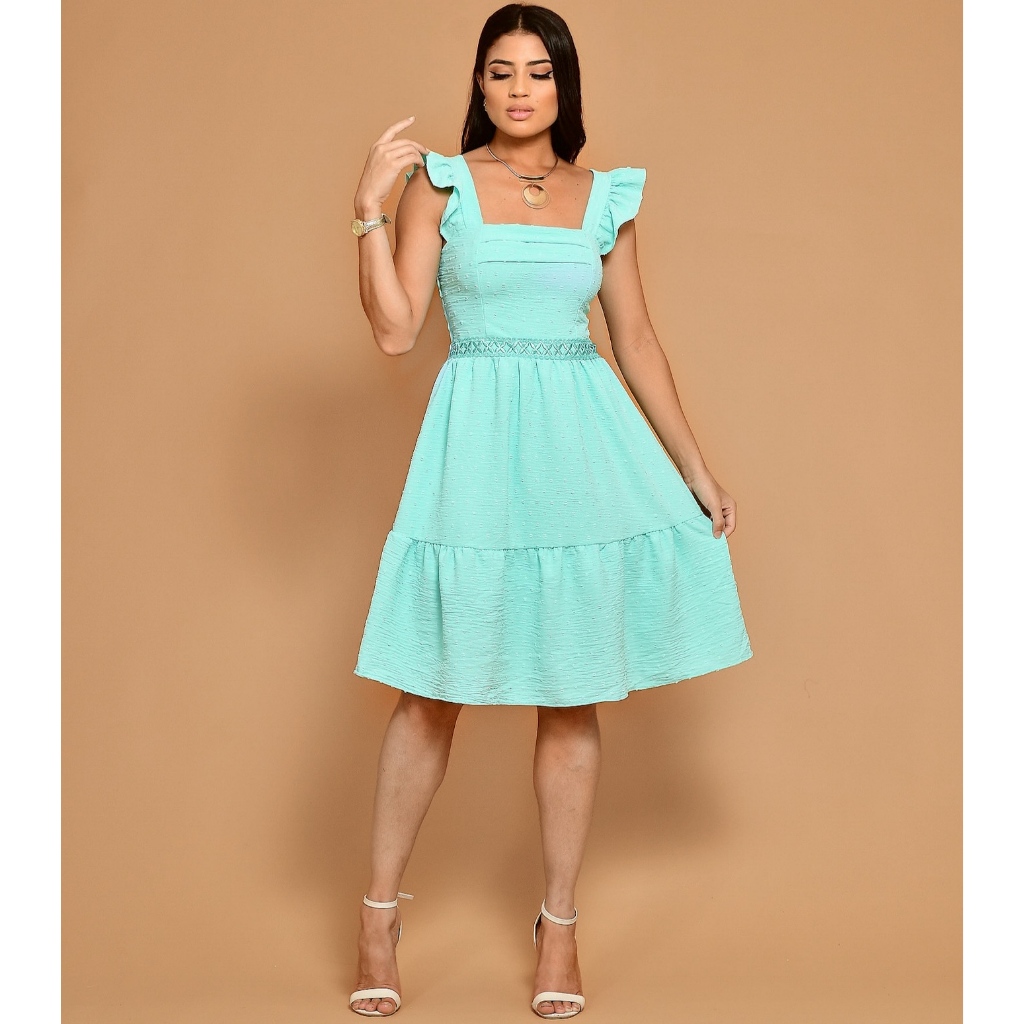 vestido curto luxo duna com babada na manga renda na cintura 0801