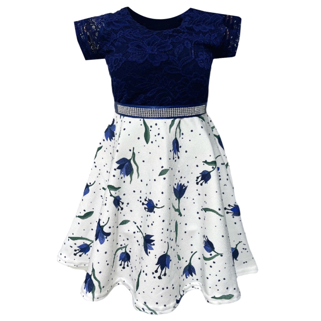 Vestido Infantil Manga Curta Rodado Renda E Faixa Strass