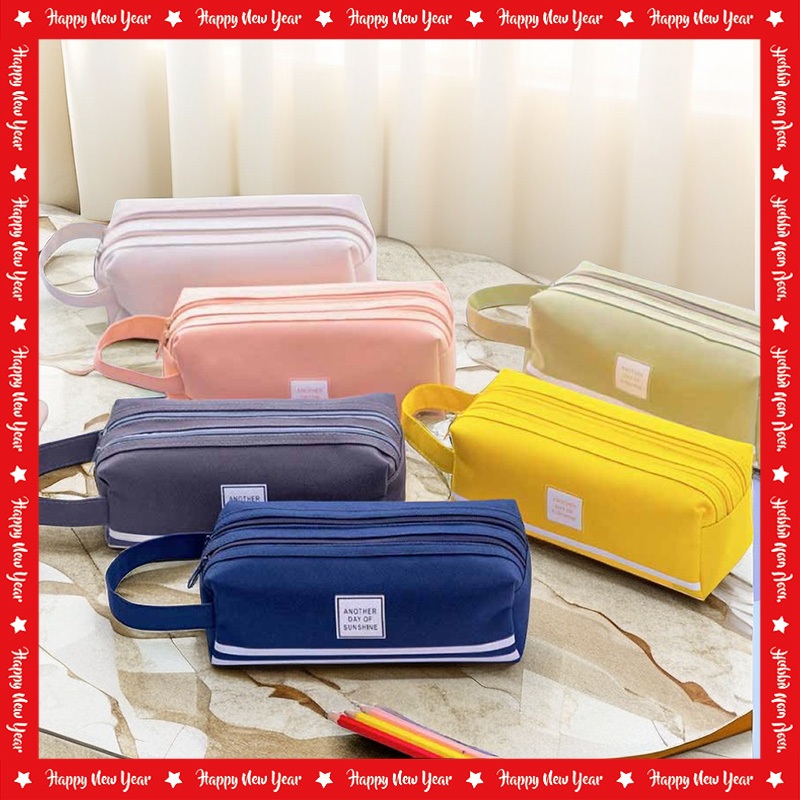 [Escolha De valor] portátil camada dupla simples Oxford lápis com zíper duplo Estojo de papelaria para estudantes
