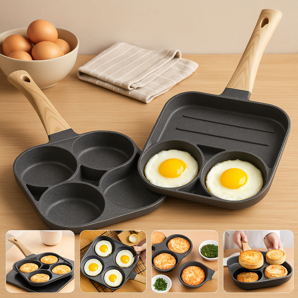 Frigideira Antiaderente Cerâmica 3 em 1 Multifuncional 4 Furos Ovo Hamburguer Jogo Panela Não Gruda