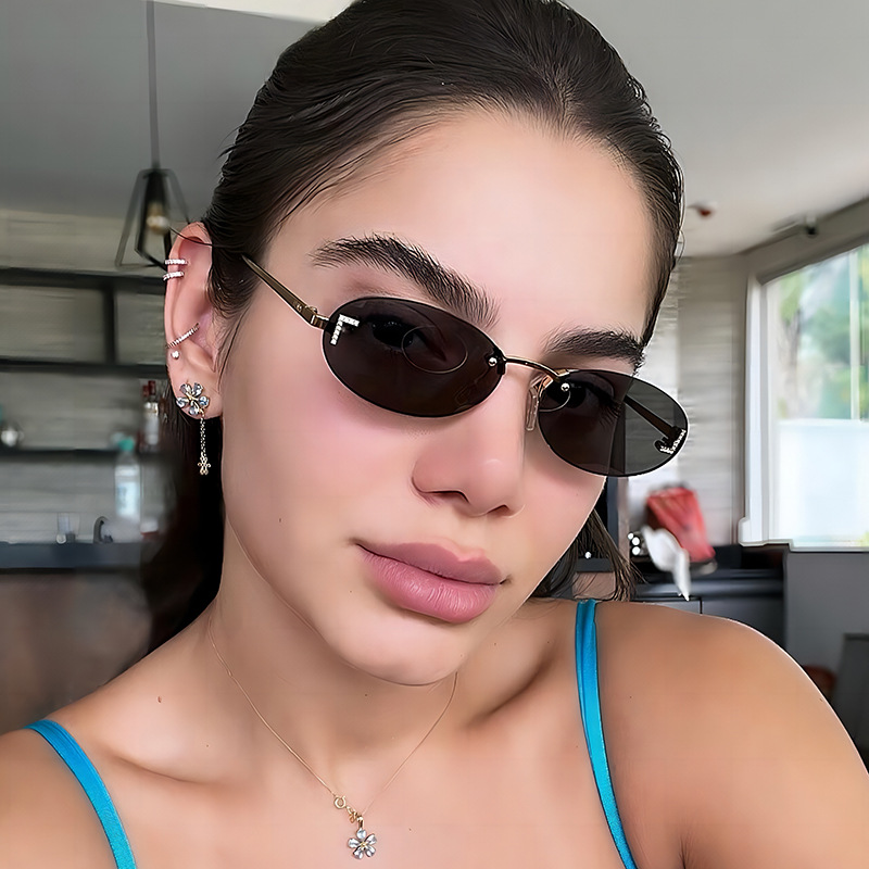 Letra L Óculos de sol sem moldura Óculos de sol redondos Retro Pequena Moldura Óculos de sol Homens Mulheres Óculos de sol com moldura Oval metálica