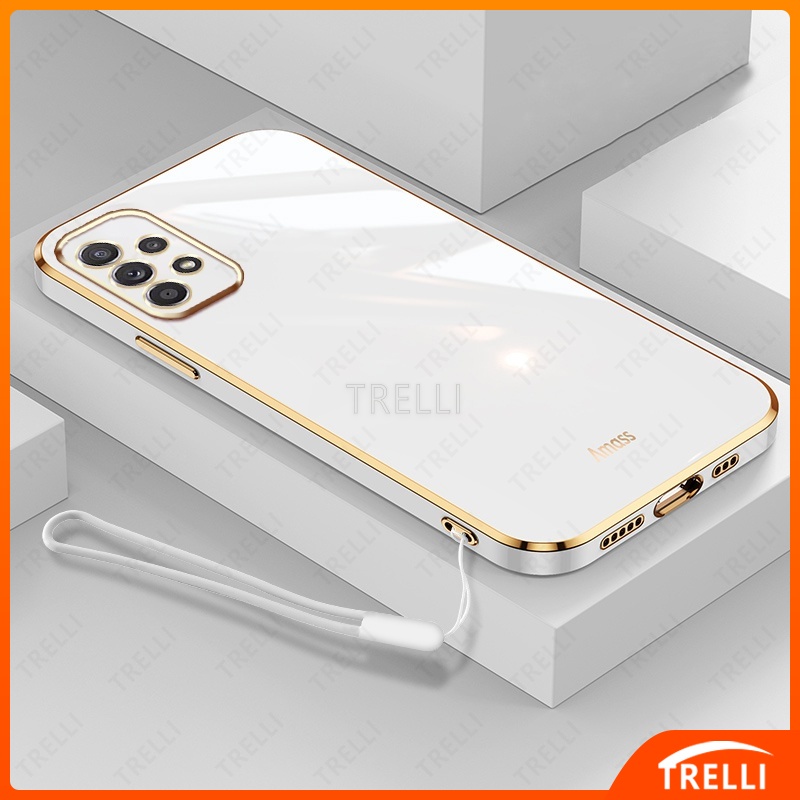 TRELLI Samsung Galaxy A50 A50S A51 A52 A52S A53 A54 4G/5G 6D Borda Reta Galvanizada Com Estojo Para Câmera Lanyard Macio E Luxuoso Novo De Alta Qualidade !