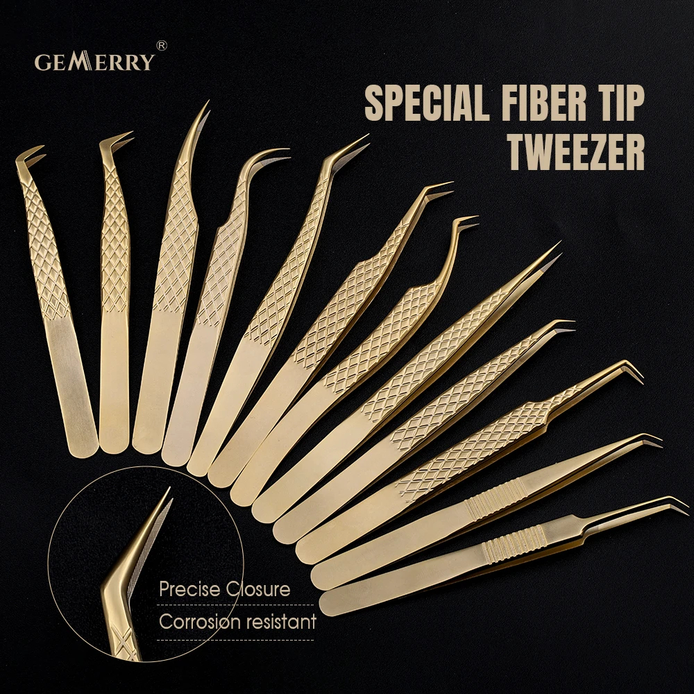 Wendy 1 Pcs Pinça De Extensão De Pestanas Com Pontas De Fibra Aço Inoxidável Dourada De Alta Precisão Para Ferramentas De Maquiagem De Ventiladores De Volume