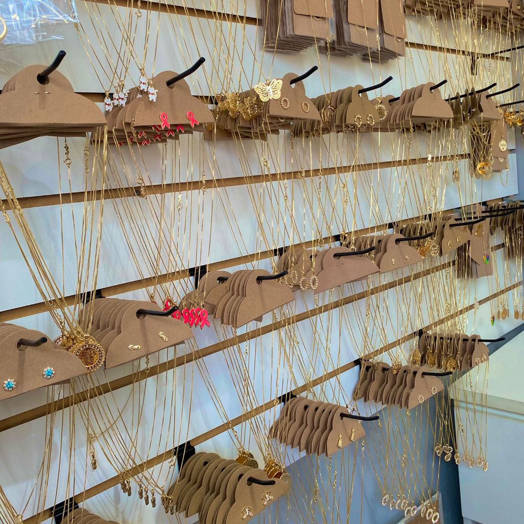 Conjunto Colar Chocker com Pulseira e Par de Brinco Argola Tiffany Rosa Banhada a Ouro.