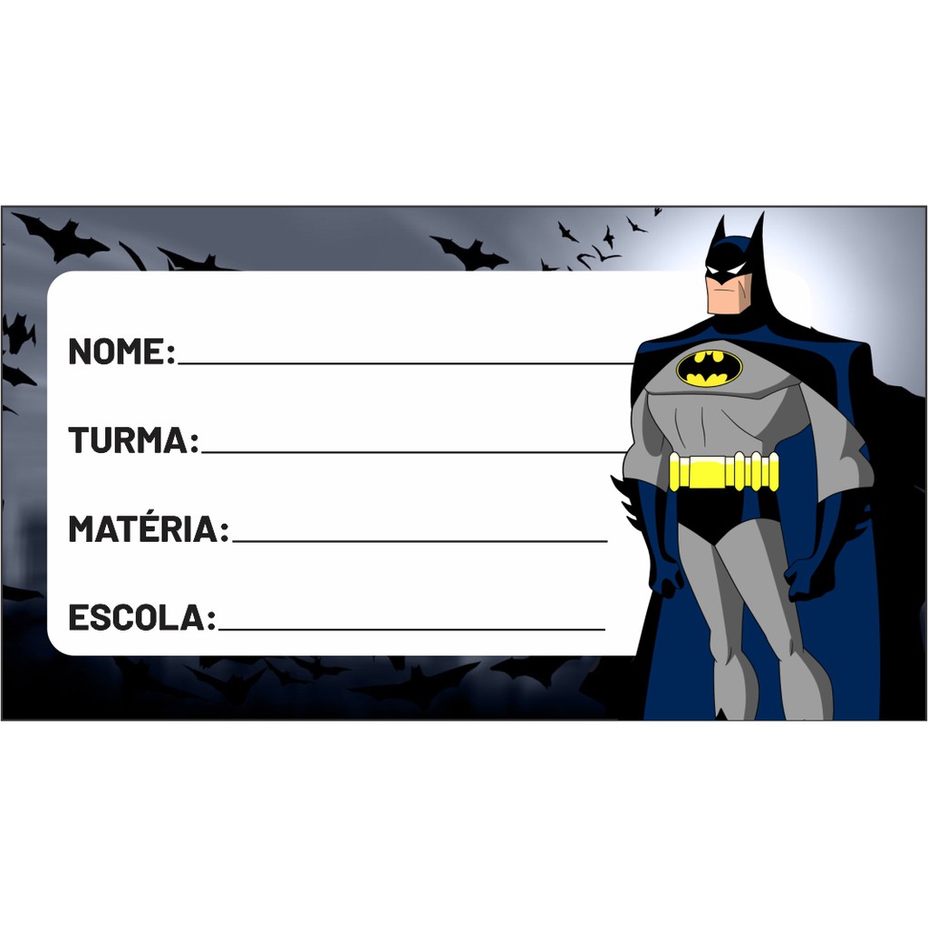 10 Etiquetas de Papel Adesivo escolar para identificação de caderno - Personagem Batman - Liga da Justiça - Tamanho de cada Etiqueta: 9x5cm