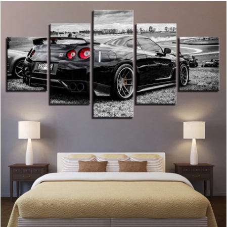 Quadros decorativos Grandes 1,80x0,65 Mosaicos para sua sala ou quarto Kit 5 peças Apaixonados por carros Gtr preto lindo Protector = 327