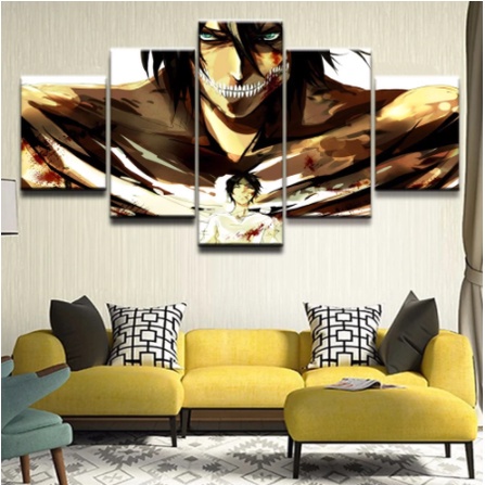 Quadros decorativos Mosaicos para sua sala ou quarto Kit 5 peças Anime shingeki atack on titan Eren e titan de ataque 1,60x0,60