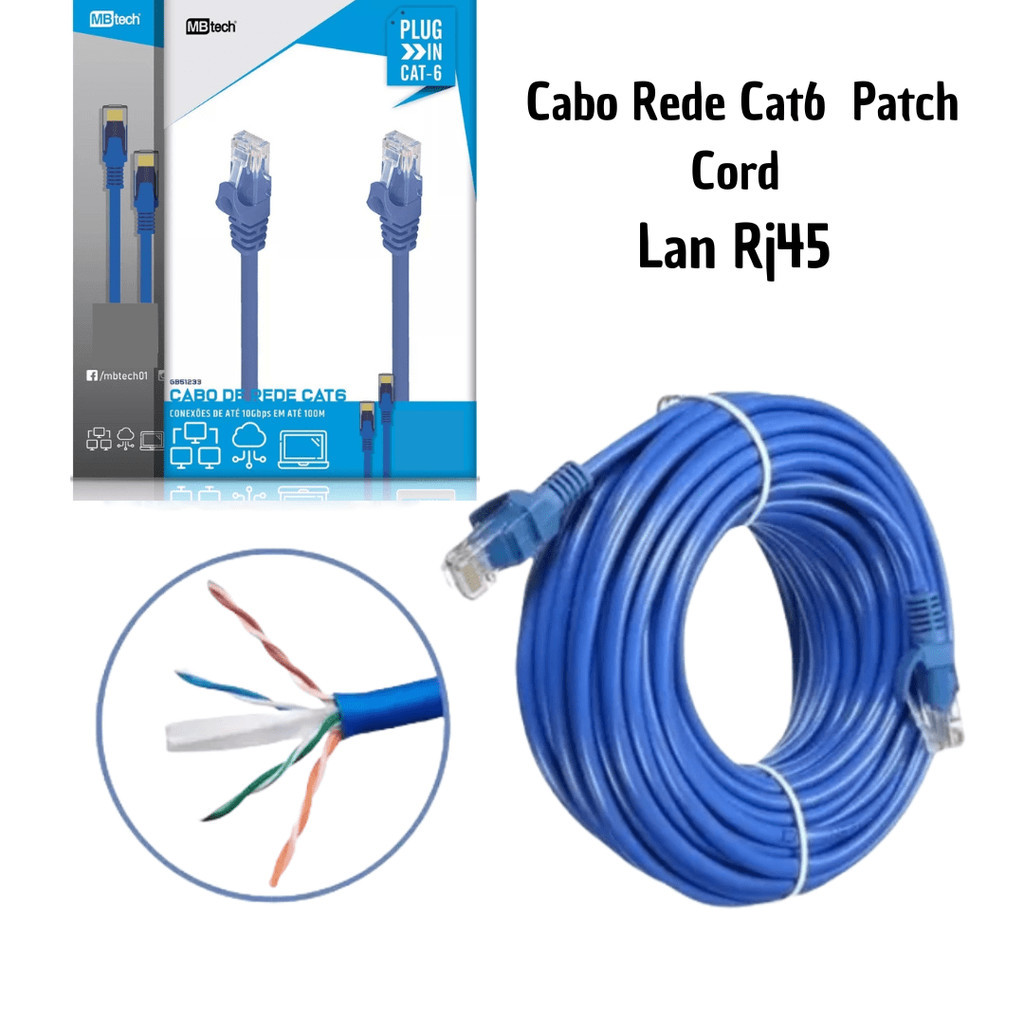Cabo de Rede LAN Ethernet Cat6 Azul Montado RJ45 Internet, Roteador, Smartv, Tvbox, Games 3m/5m/10m/15m/20m