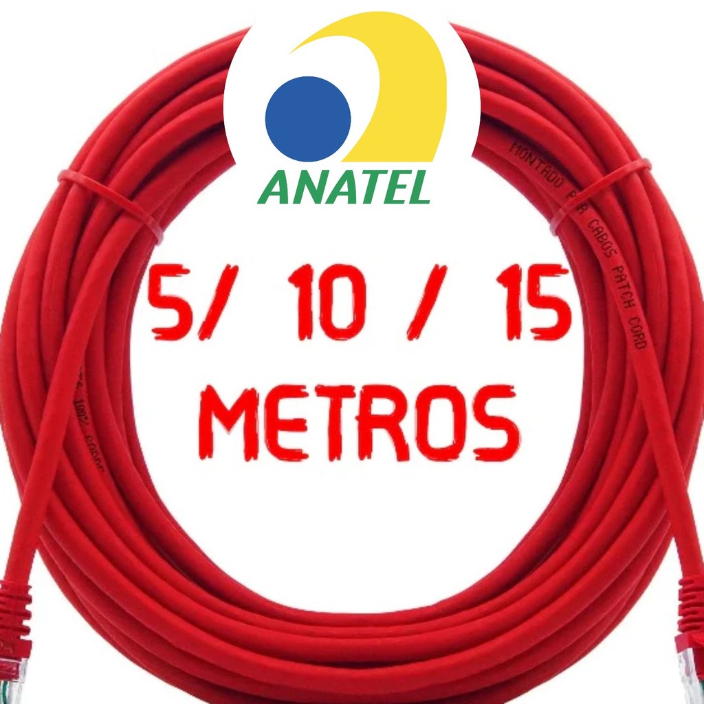 Cabo de Rede CAT6 ANATEL C/ Conector Prontos P/uso - 5M - 10M - 15M + Conector RJ45 + Capa Prontos P/uso