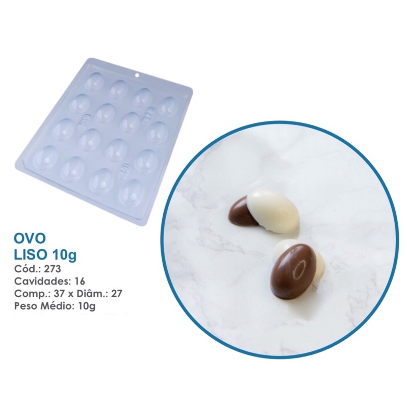 Forma Simples Ovo Liso 10g 273 (J8) em Acetato BWB Para Bombom e Doces de Chocolate e Confeitaria Páscoa