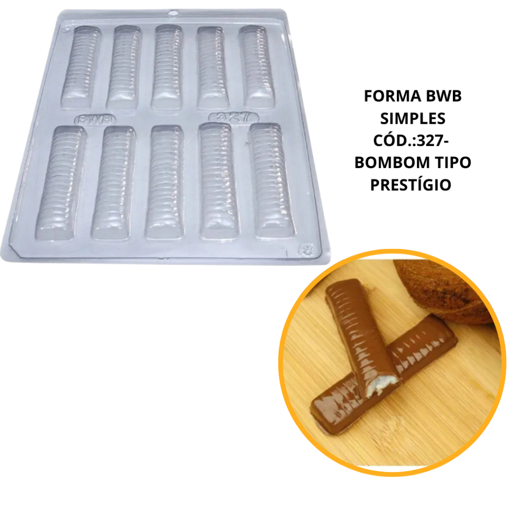 FORMA SIMPLES BOMBOM TIPO PRESTÍGIO CÓD.:327 - (E3) EM ACETATO BWB PARA BOMBOM DOCES DE CHOCOLATE E CONFEITARIA.