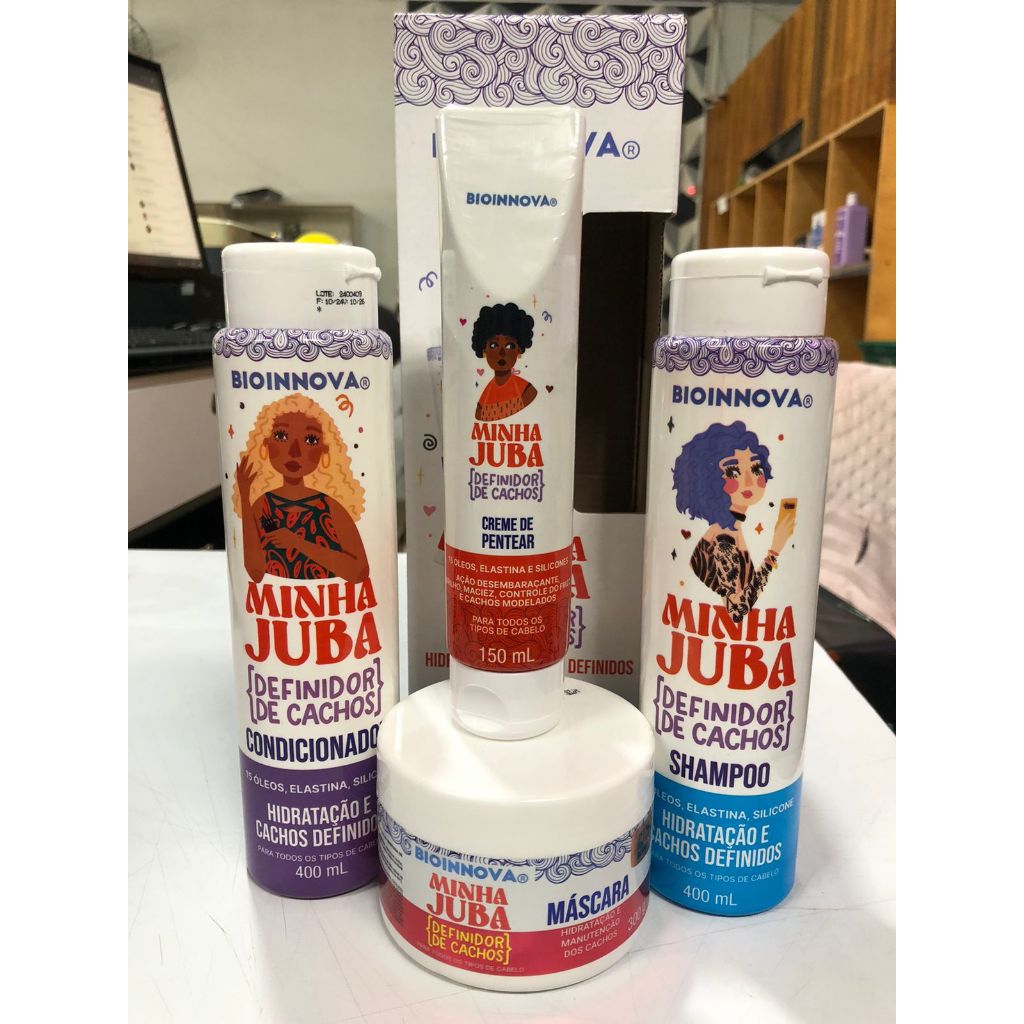 KIT CAPILAR MINHA JUBA C/4 ITENS BIOINNOVA PARA TODAS AS CURVATURAS (DEFINIDOR DE CACHOS)