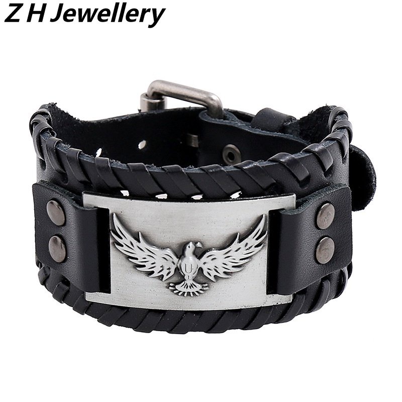 [Z H Jóias] Hip Hop Rock Retro Moda Masculina Viking Eagle Rune Pulseira De Couro Acessórios De Para Festa
