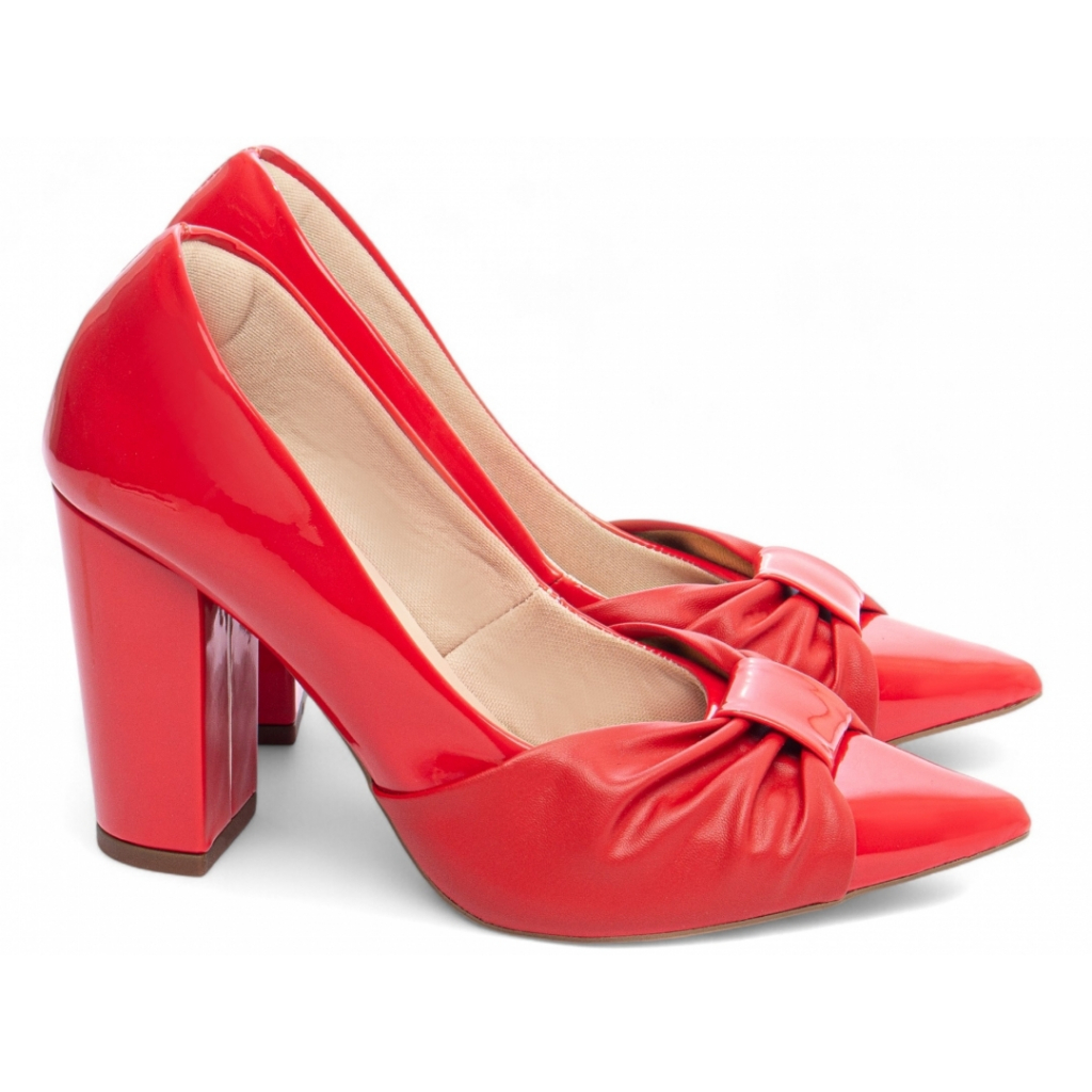 Sapato Scarpin Feminino Salto Alto Grosso vermelho off-white caramelo e preto