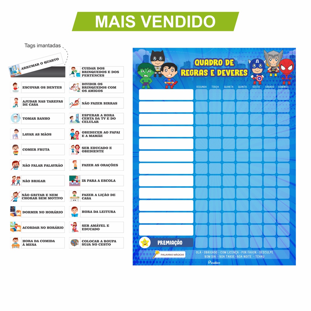 Kit Quadro de Incentivo + Quadro de Rotina Infantil - Tema Heróis Baby para Atividades e Motivação Diária