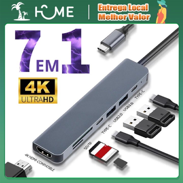 Navio local HUB 7 em 1 Tipo C USB HDTV 4K 30Hz Vídeo USB 3.0 SD TF Cartão Slot Leitor de Dados