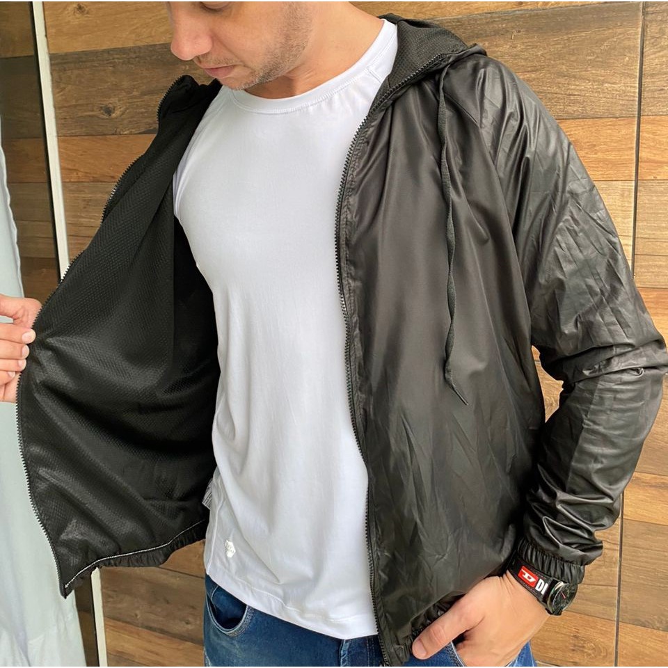 Jaqueta corta vento 100% forrada lisa com capuz <>