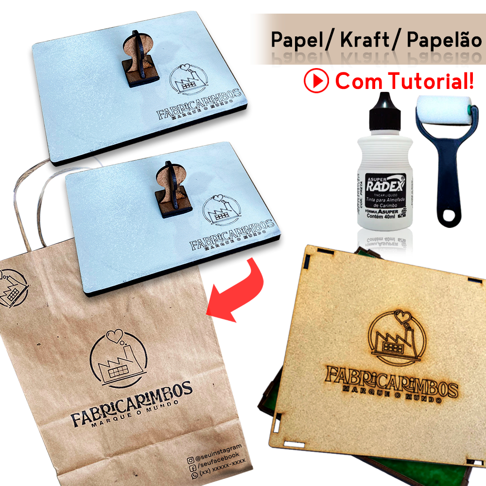 Kit 2 Carimbos - (1)10x10 e (1)5x5cm + almofada e tinta. Carimbo Personalizado para Sacola Kraft