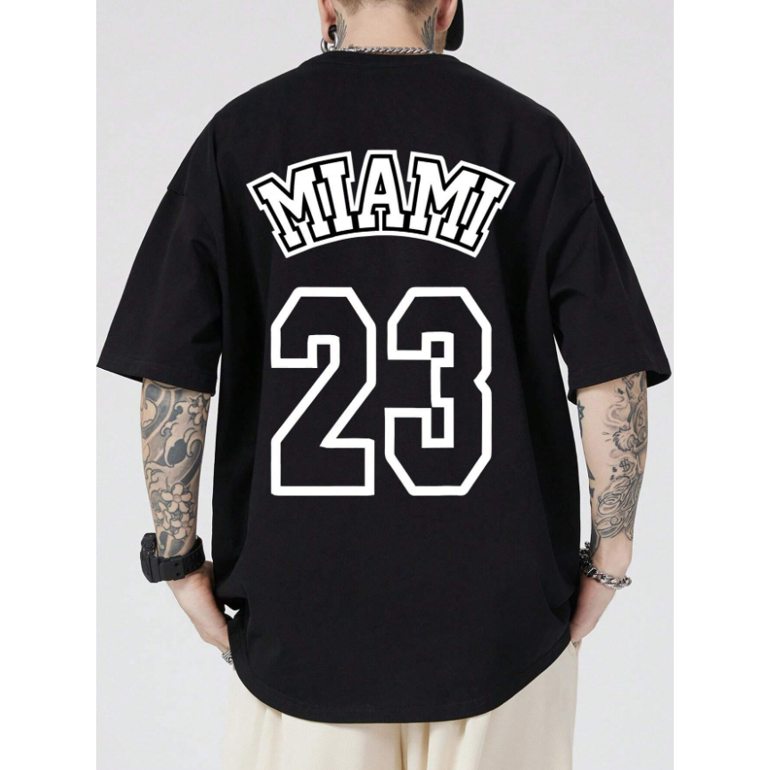 Camiseta T-shirt Miami 23 Estampa Grafica Bordada Frente Costas Time U.S.A Esporte Jogadores Lider Torcida Skatista Streetwear Manga Curta 3/4 Ombro Caido Oversized