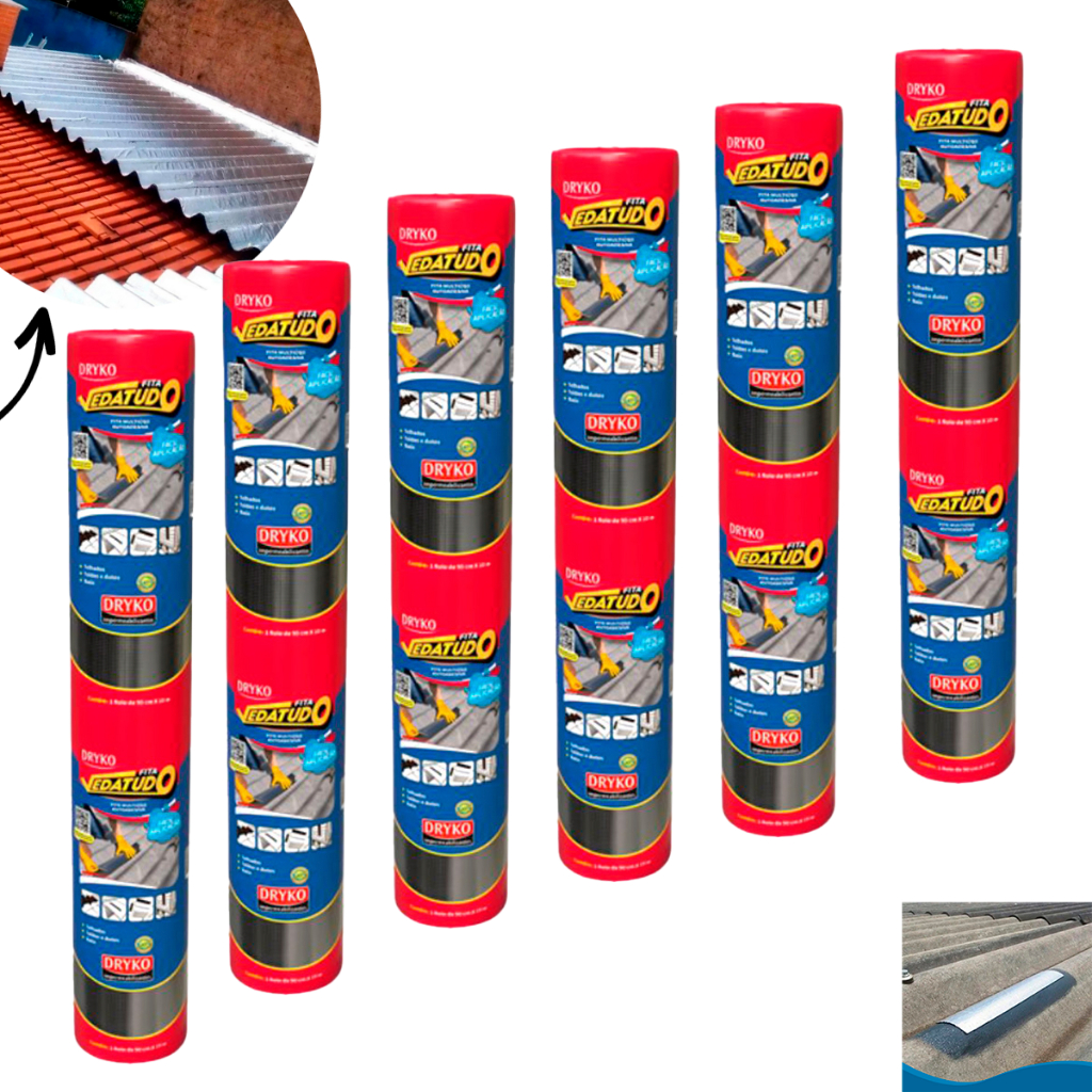 Manta Asfáltica Fita Adesiva Vedatudo 10cm x 10cm Impermeabilizante Telhado Laje Calhas Vedação Contra Infiltração DRYKO