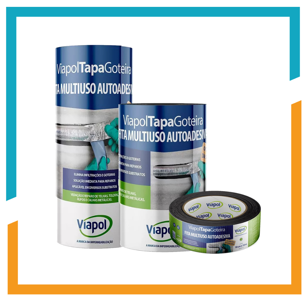 Fita Adesiva Alumínio Manta Asfáltica Multiuso Tapa Goteira vedação de telhado Laje Rufo Chaminé Viapol