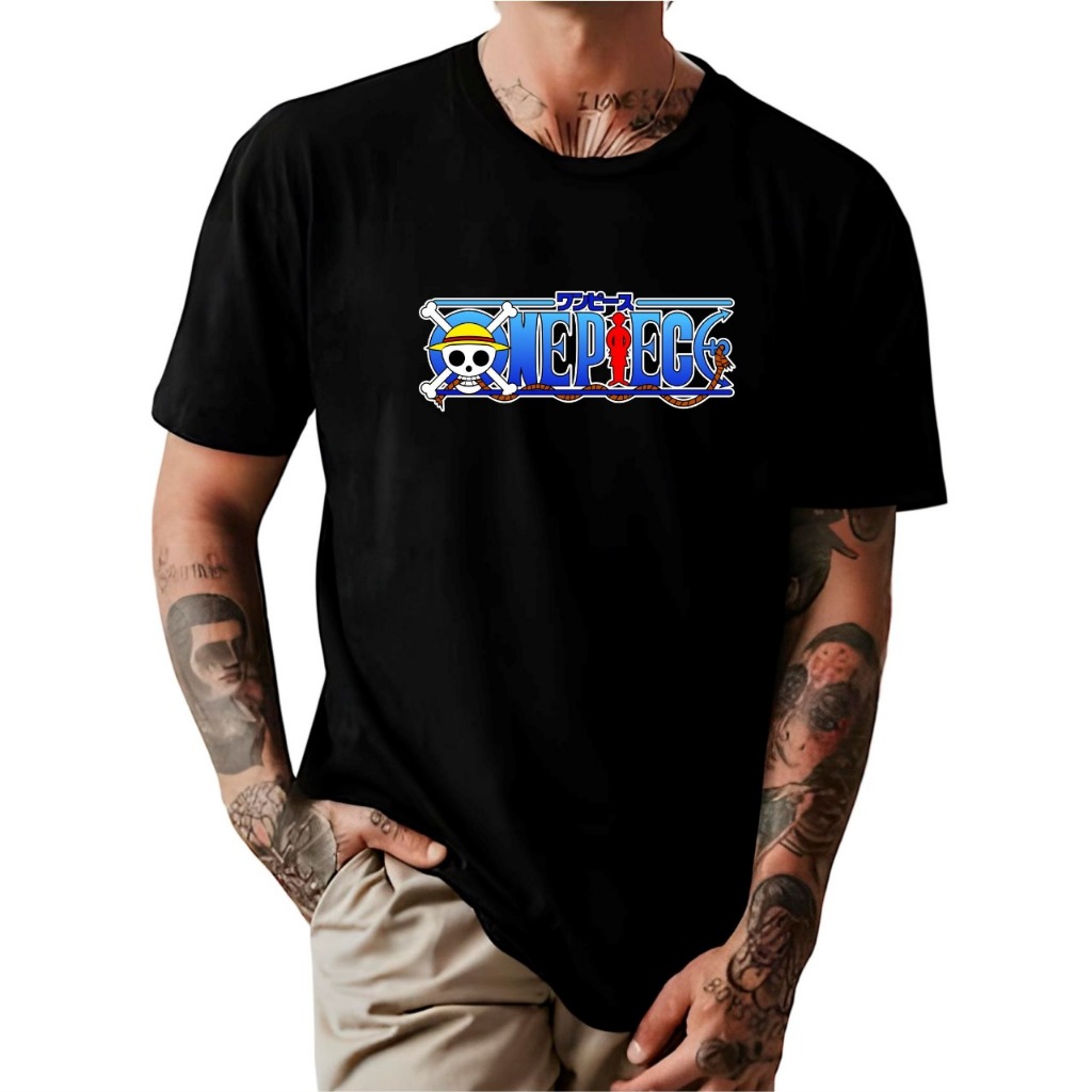 Camiseta Camiseta Masculina One Piece Luffy Anime Unissex 100% Algodão Logo Bandeira Pirata