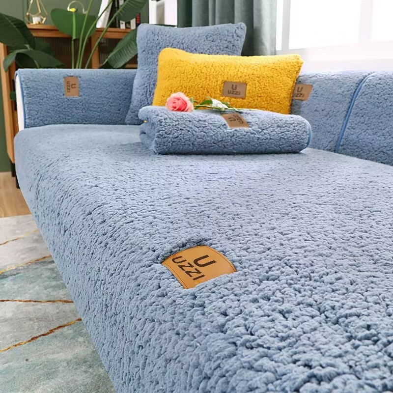 Nova capa de sofá de caxemira com almofada protetora de sofá antiderrapante de pelúcia, adequada para 1/2/3/4 assentos em forma de L