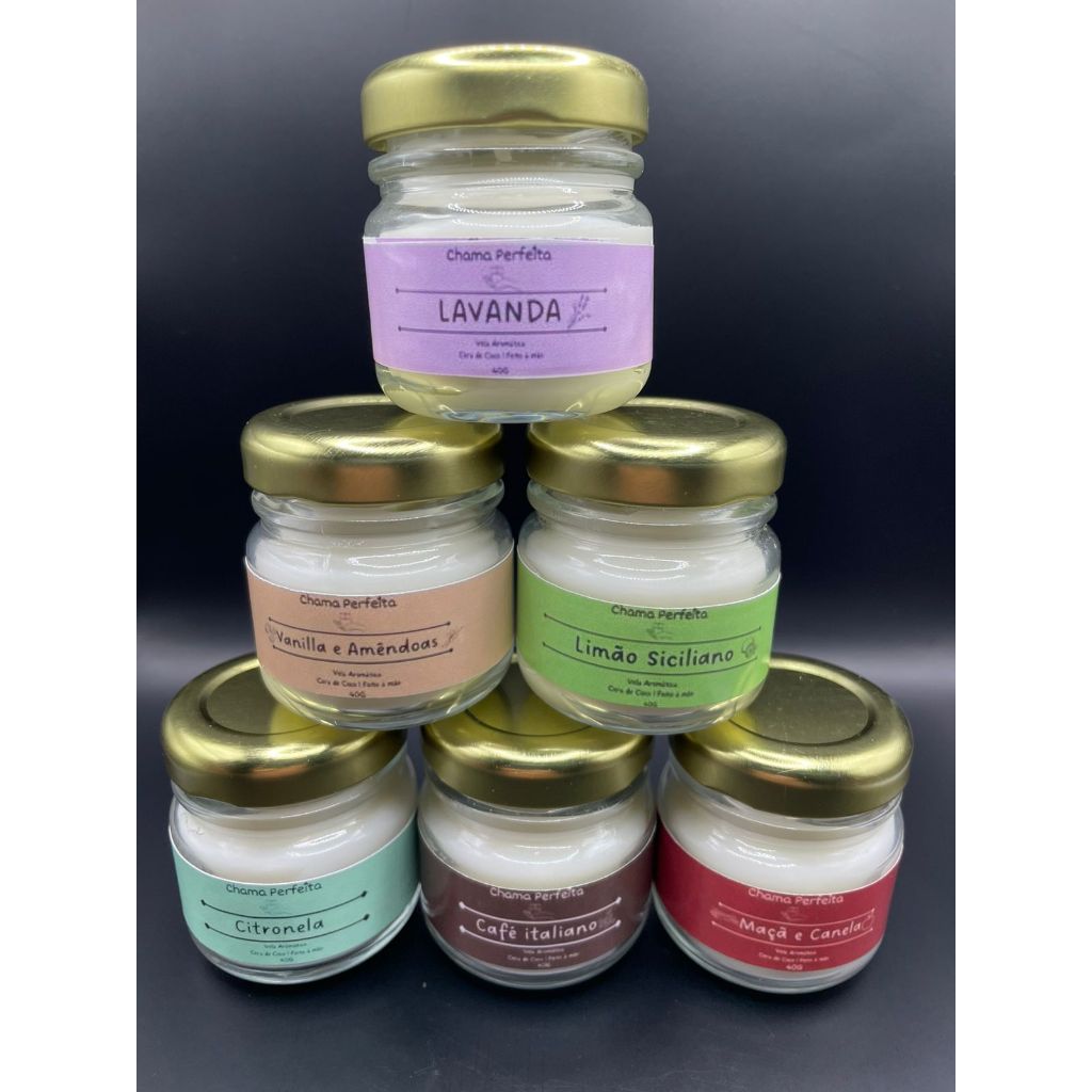 kit com 6 unidades Mini velas aromáticas 40g lembrancinha batizado aniversario maternidade cooperativo