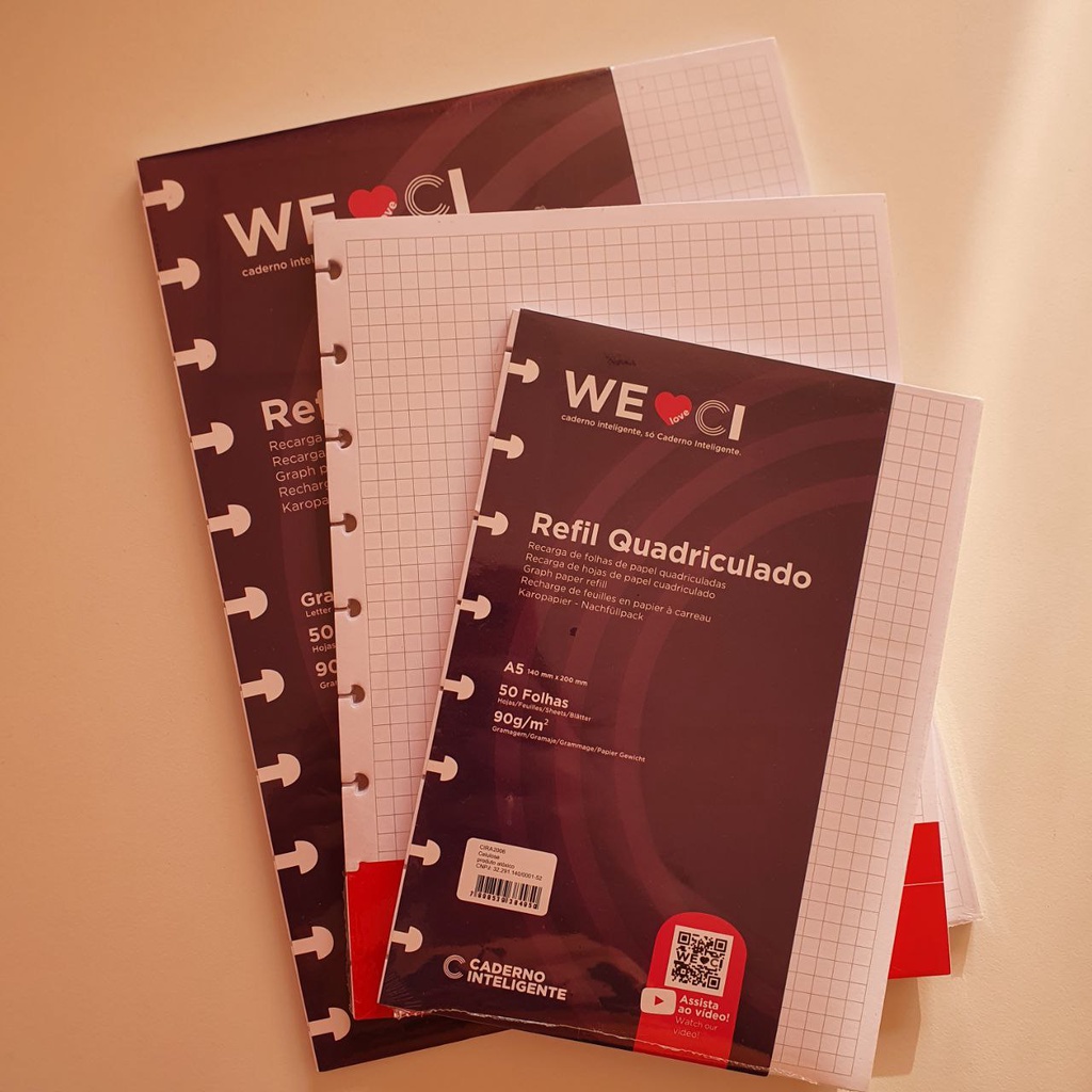 Refil Quadriculado 90g para Caderno Inteligente | Tamanho A5, Médio ou Grande