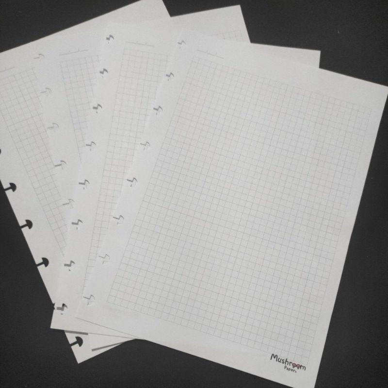 Folha tamanho A5 Quadriculado furo Cogumelo. Refil compatível com Caderno Inteligente.