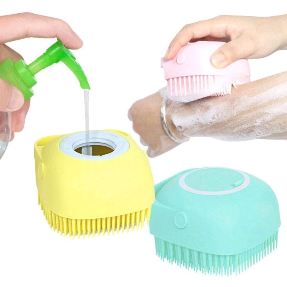 Esponja Para Banho de Silicone com Dispenser Massageador Escova Shampoo Sabonete Liquido Infantil Pet Crianças
