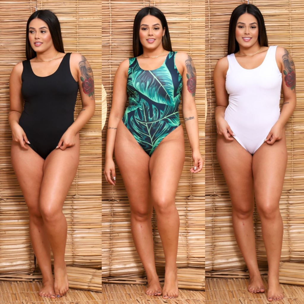 Maiô Body Estampa Tropical Do P ao G4 Curve e Plus Size Importado Moda Gringa Moda Praia Feminina
