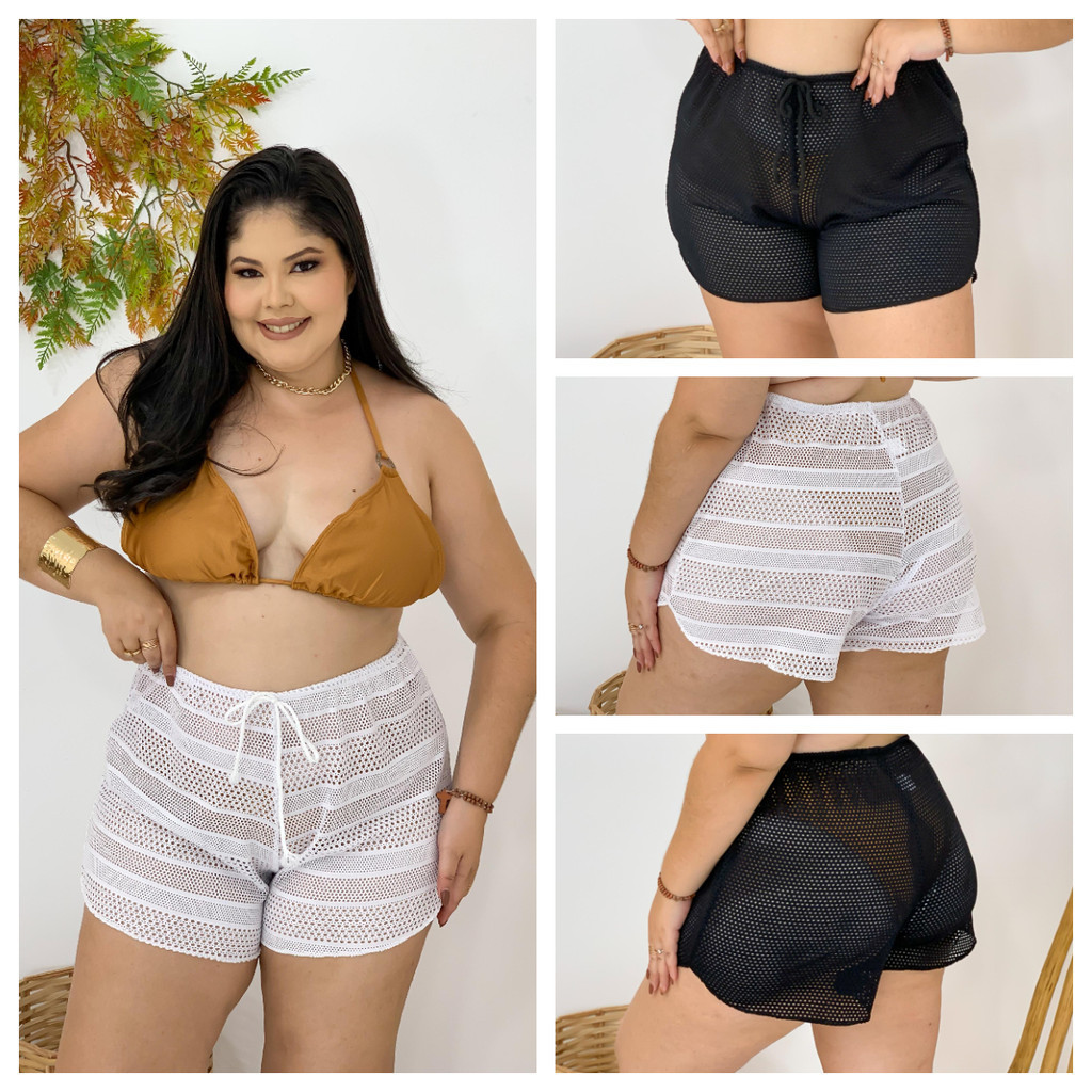 Short Saída de Praia Renda G, G1, G2 e G3 Plus Size/Curve Moda Praia Piscina para usar com Maiô ou Biquíni
