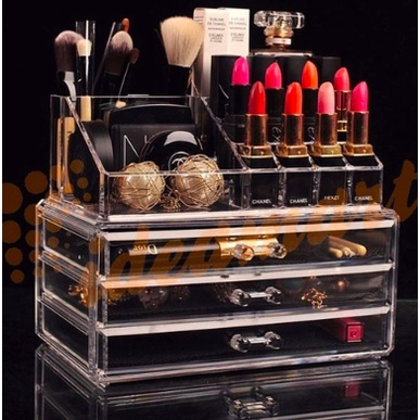 Kit Porta Maquiagem Organizador Multiuso De Acrílico Batom Cosméticos Transparente com Divisórias