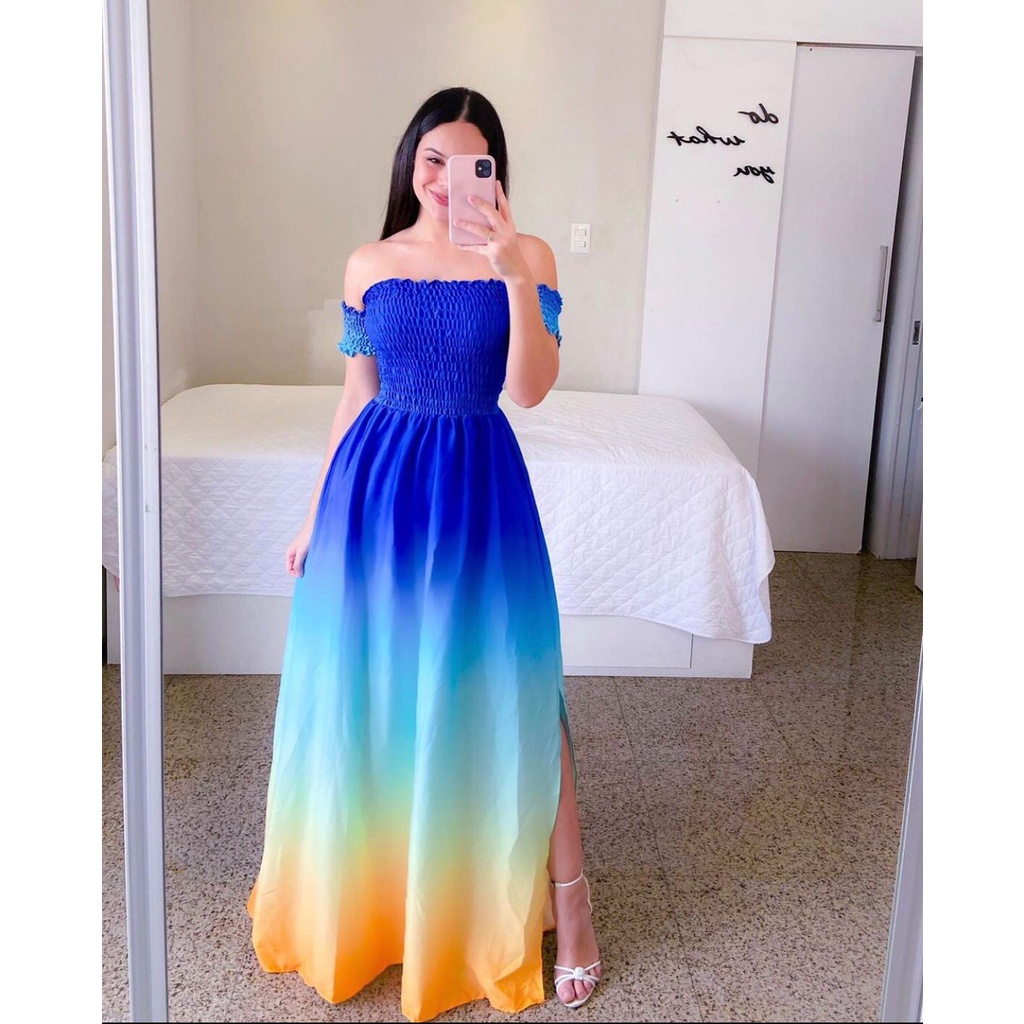 Vestido feminino longo evangelico de fenda juliana Moda Evangelica ciganinha