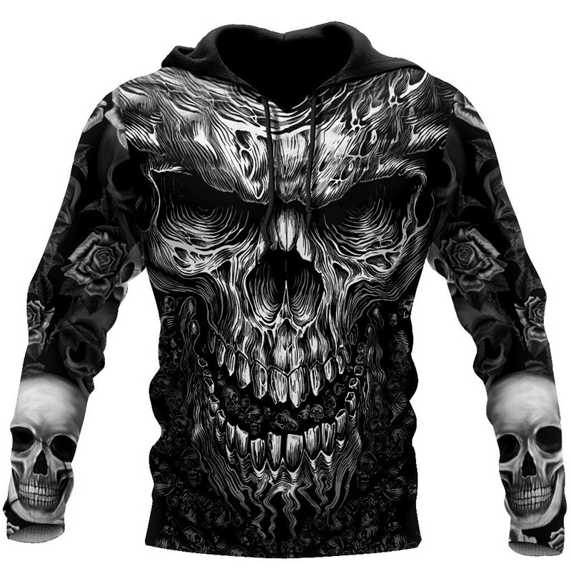 Nova Primavera Outono Dos Homens Moletom Com Capuz Crânio Impressão 3D Harajuku Pullover Hip Hop Unisex Jaqueta De Grandes Dimensões