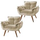 Kit 02 Poltrona Opala decorativa pés palito bege