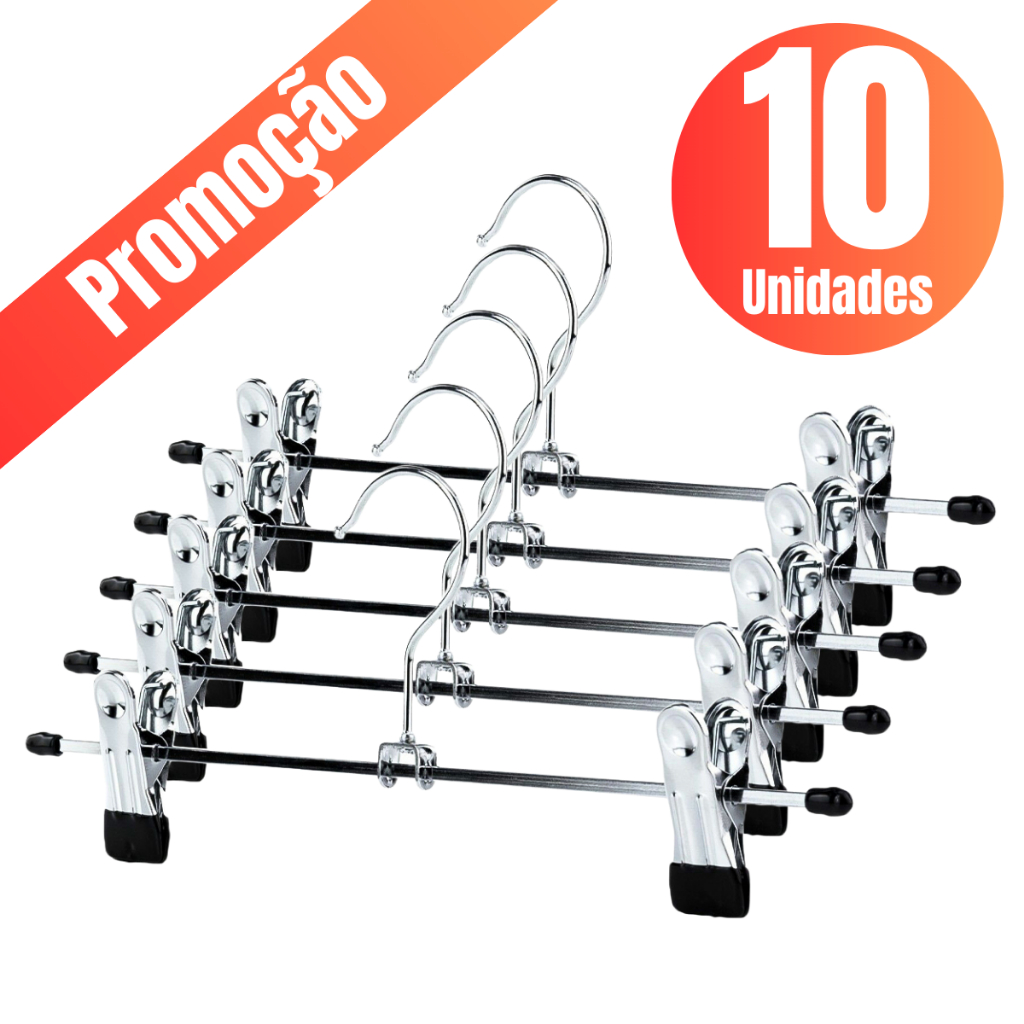 Kit 10 Cabides Presilha Metal Cromado Premium Para Saia Calça Bermuda Vestido Atacado