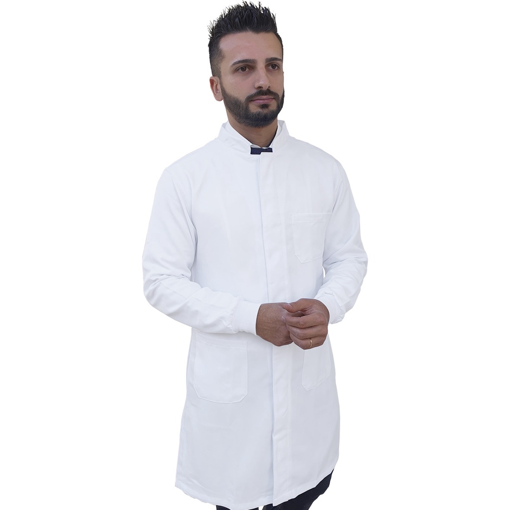 Avental Branco Médico Dentista Gabardine | Jaleco Manga Longa com Punho E Gola Padre Bu65