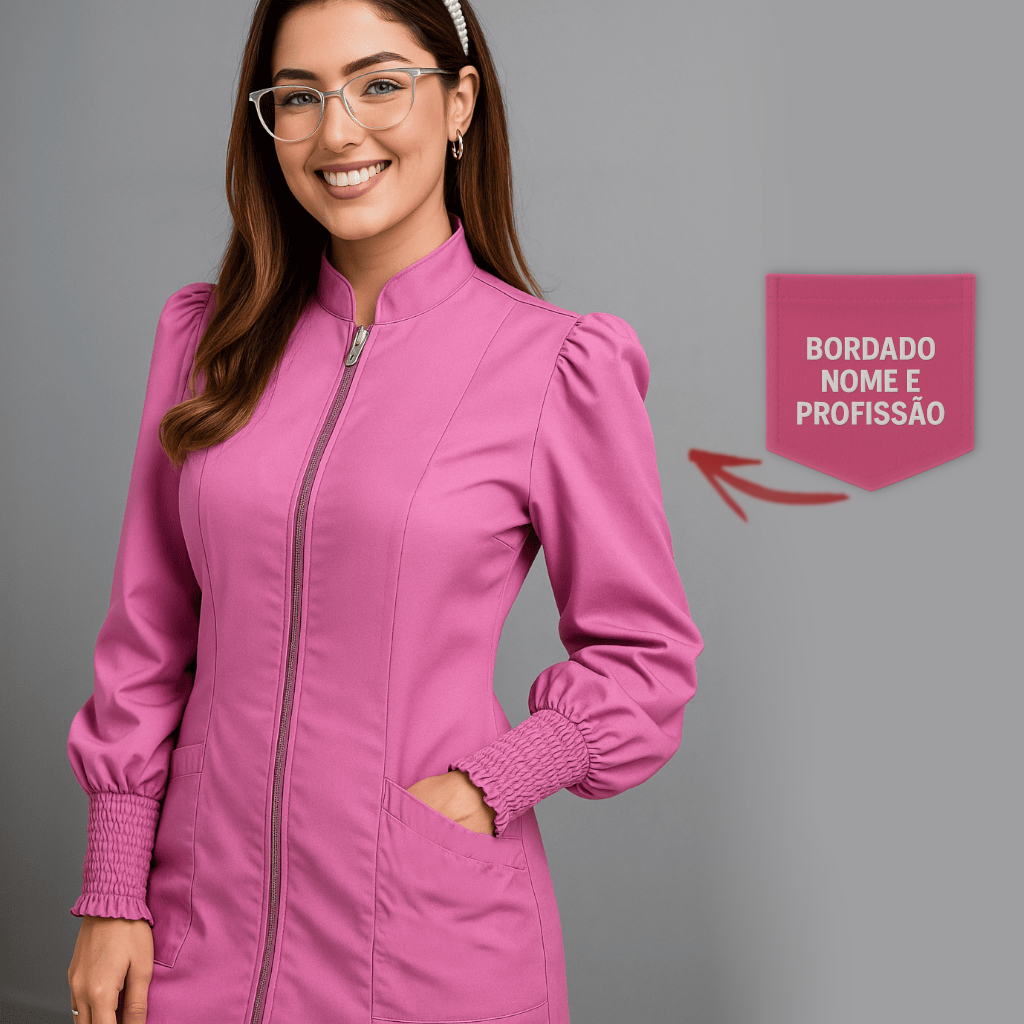 Jaleco Manga Princesa com Elastec no Punho PERSONALIZADO COM NOME + PROFISSÃO BORDADO