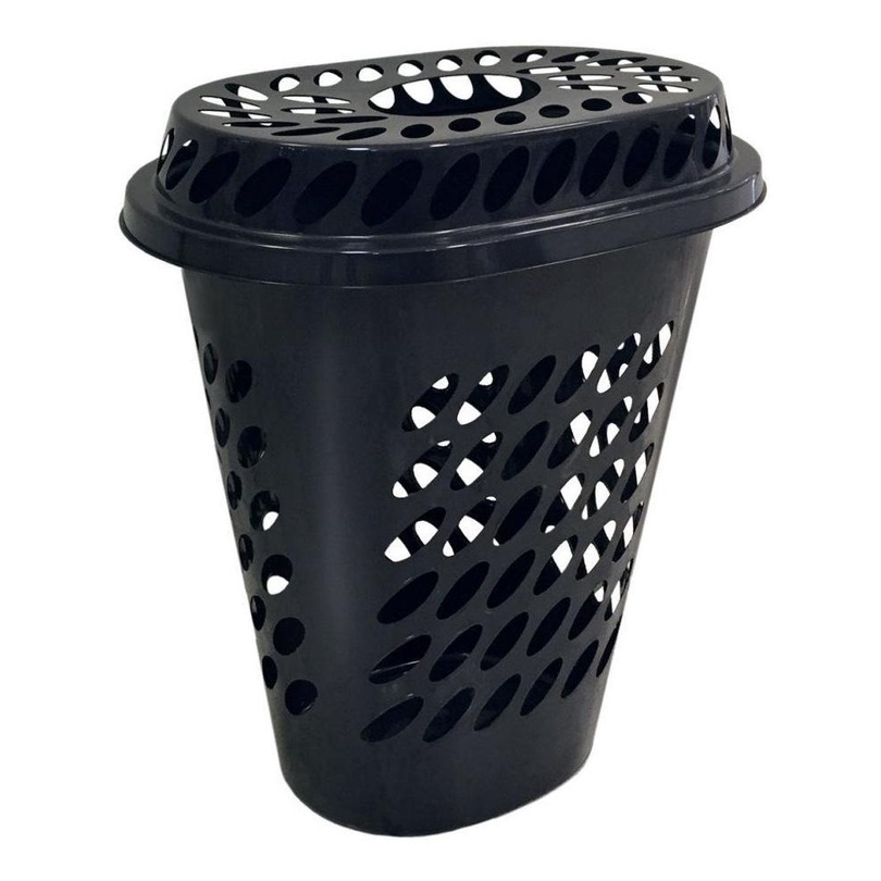 Cesto de Roupas Organizador Oval Elegance Com Tampa Preto