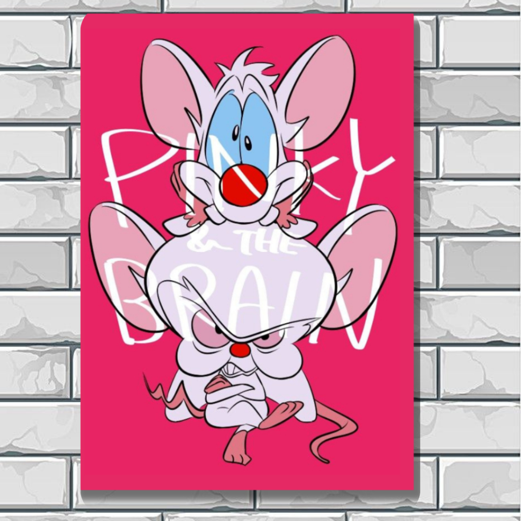 Pinky eo Cérebro - Placa Decorativa MDF 3mm - 14X20cm - Quadro Decorativo Sem Moldura - Decoração - Desenho Animado