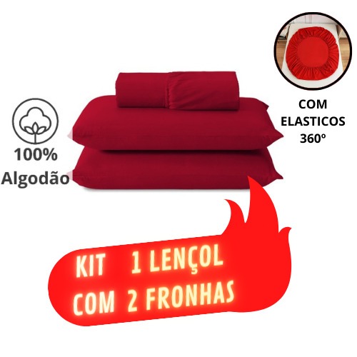 Kit Jogo de Lençol 3 Peças 100% Algodão Percal 200 Fios Cama Queen Ponto Palito Liso C/ Elástico Não Faz Bolinhas - PROMOÇÃO IMPERDÍVEL