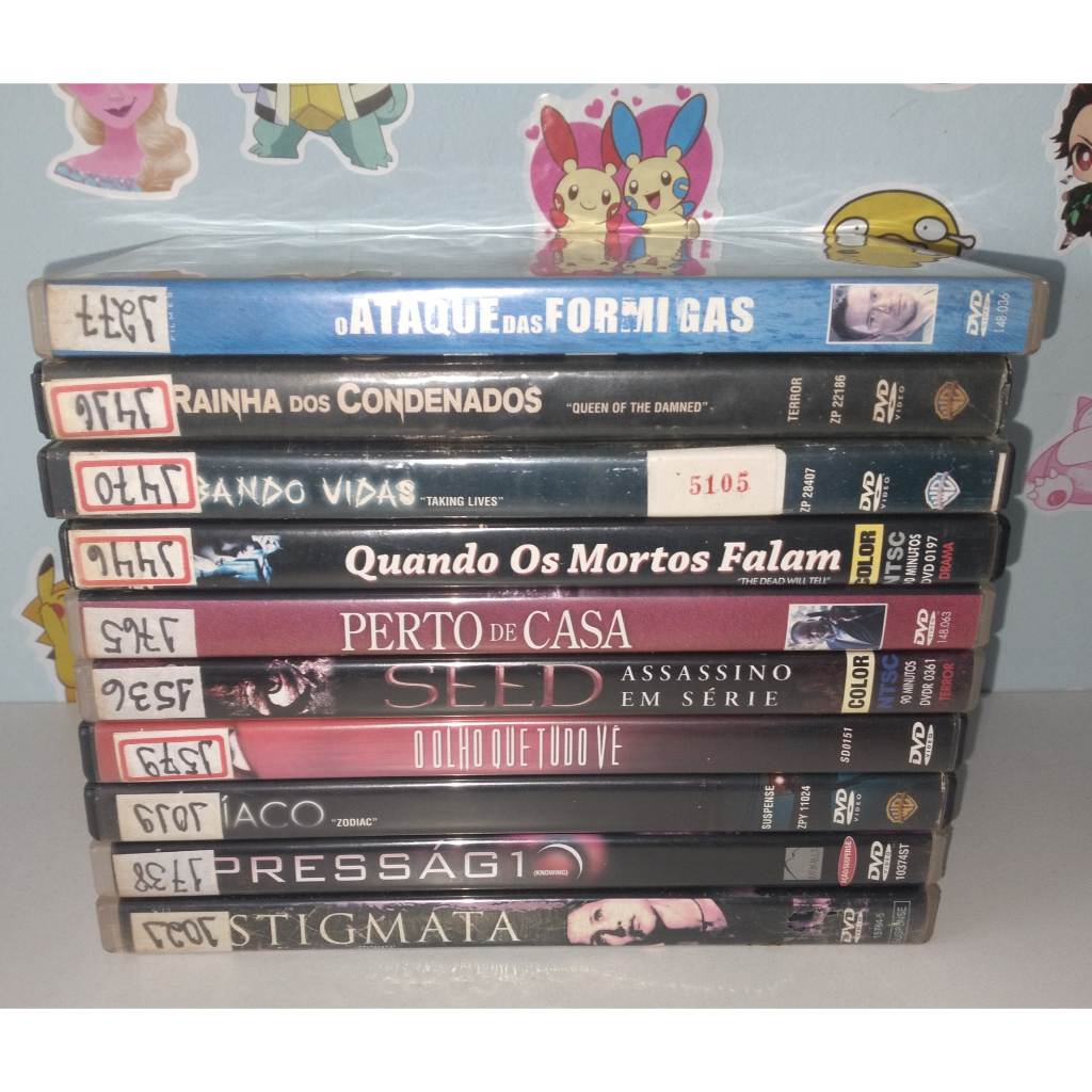 COLEÇÃO 10 FILMES DVD ORIGINAL DE LOCADORA O ATAQUE DAS FORMIGAS A RAINHA DOS CONDENADOS ROUBANDO VIDAS QUANDO OS MORTOS FALAM PERTO DE CASA SEED ASSASSINO EM SERIE O OLHO QUE TUDO VE ZODIACO PRESSAGIO ESTIGMATA